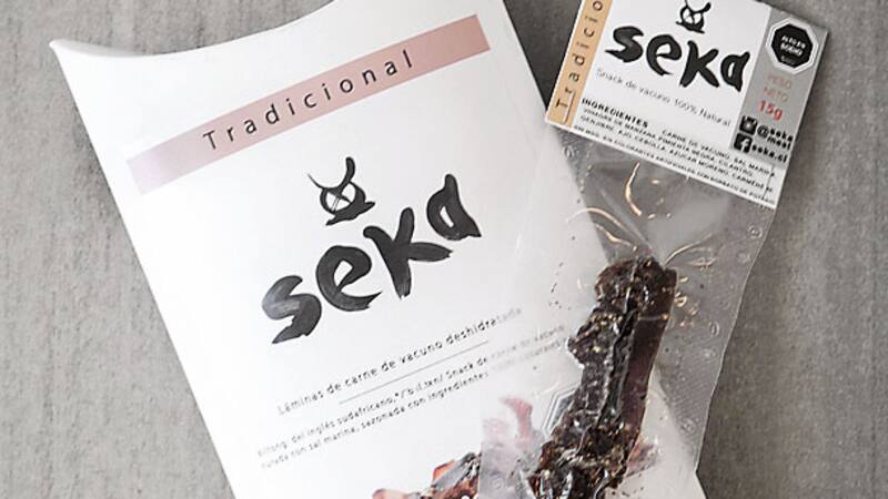 "Es un snack delicioso, full proteico: láminas de carne de vacuno de libre pastoreo y alimentados con pasto. Son curadas con sal marina, sazonadas y secadas. Hay dos variedades: la tradicional y otra con ajo y jengibre".