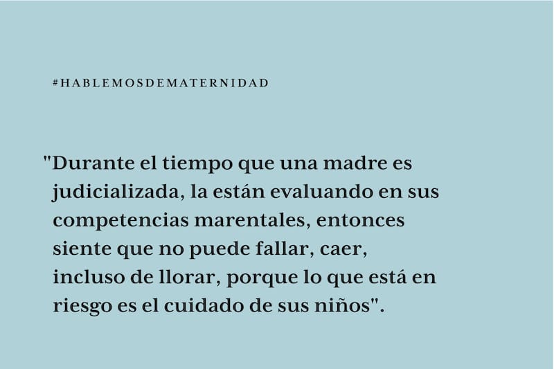 Durante todo este tiempo, a esa madre la están evaluando en sus competencias marentales, en sus vínculos, entonces no existe oportunidad de fallar ni de caer, incluso de llorar, porque lo que está en riesgo es el cuidado de los niños, su propia maternidad. Esa madre debe parecer fuerte, una guerrera, a pesar de que o entender por qué está ahí siendo evaluada.