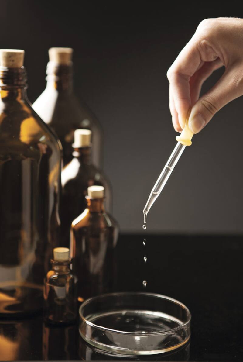 "La KCR mezcla unas pocas gotas de los productos y hace una preparación de muestra con las proporciones que tendrá mi sérum. Es una sustancia transparente y levemente aceitosa que prueba en mi muñeca. Prácticamente no tiene olor y se absorbe en un par de minutos dejando la piel tersa y con un brillo bonito. A la base común de todas las Apothecary Preparations, cuyo ingrediente principal es el escualeno (sustancia extraída de la oliva que suaviza la piel, frena la pérdida de humedad y mejora la tonicidad), se añaden dos complejos activos seleccionados especialmente para el estado de mi piel: un afinador de textura con vitamina F y LHA (Lipo-Hidroxi-Ácido), que juntos estimulan la regeneración celular, y un minimizador de poros con extracto de hinojo marino (reduce la aparición de grasa) y ácido salicílico (exfoliante).