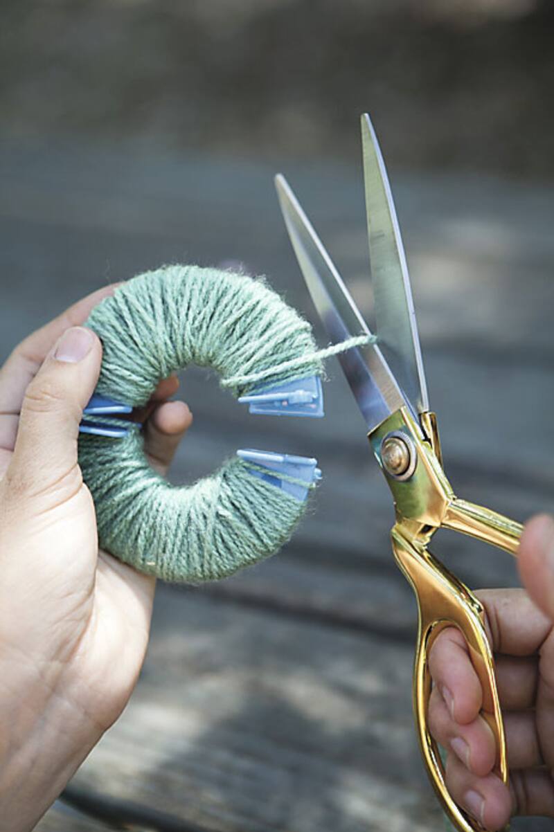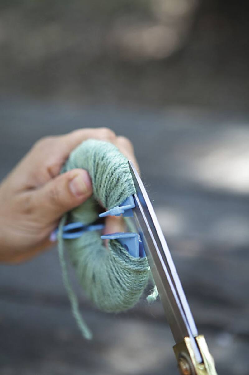 2. Enrollar lana por un lado y luego por el otro. Cortar cuando se obtenga la cantidad deseada.
