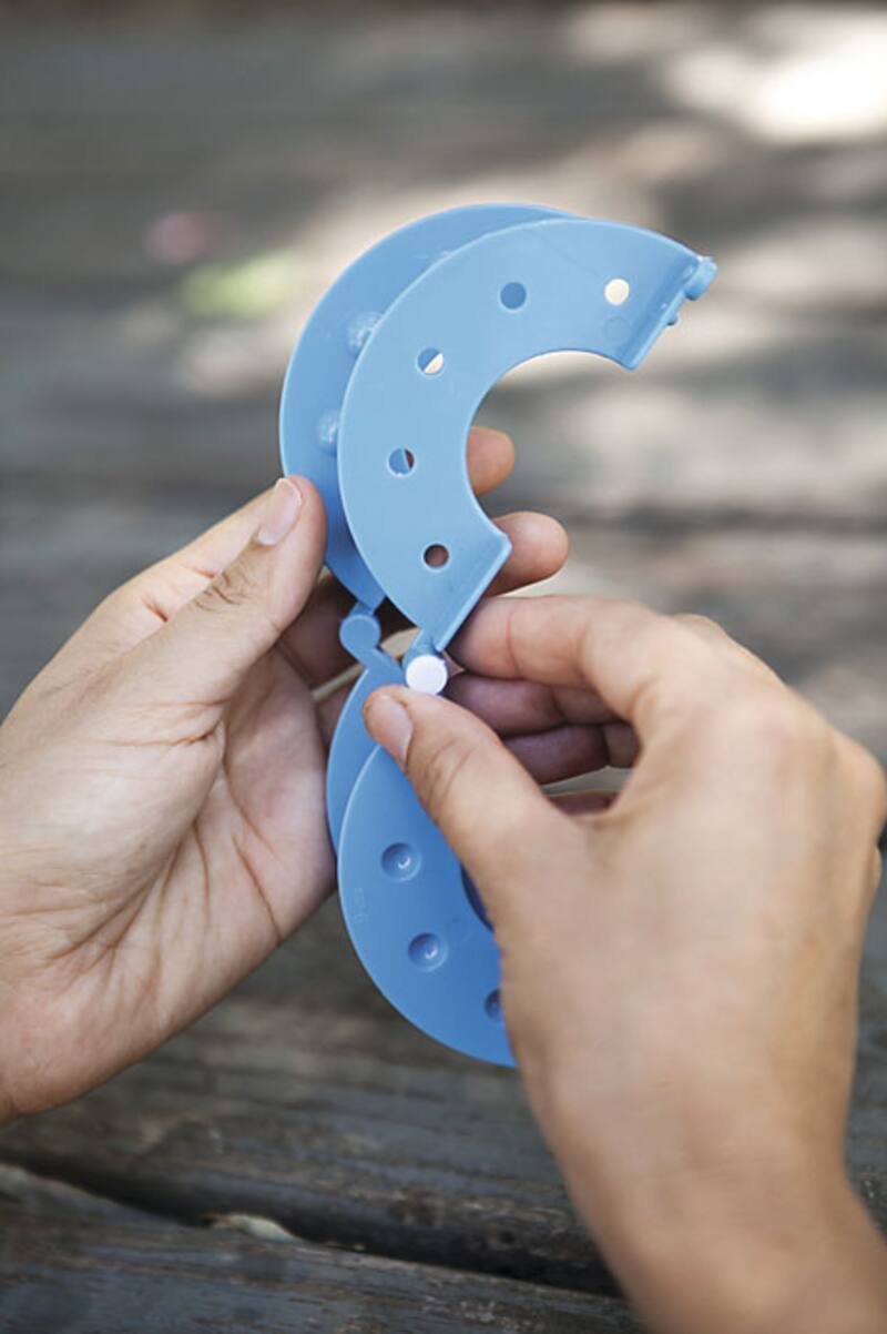 1. Para hacer el pompón con máquina: colocar las 2 piezas de máquina como lo indica la foto 1.