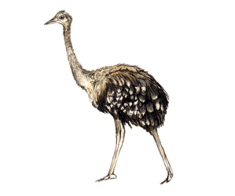 Esta avestruz endémica del altiplano chileno pesa cerca de 20 kilos y puede correr a 80 km por hora. Vive sobre los 4.000 m en bofedales, desde el límite con Perú hasta la cordillera de Vallenar, y es el macho el que construye los nidos y cría a los polluelos. Sus plumas son utilizadas por los bailarines de la danza aimara suri sicuri.