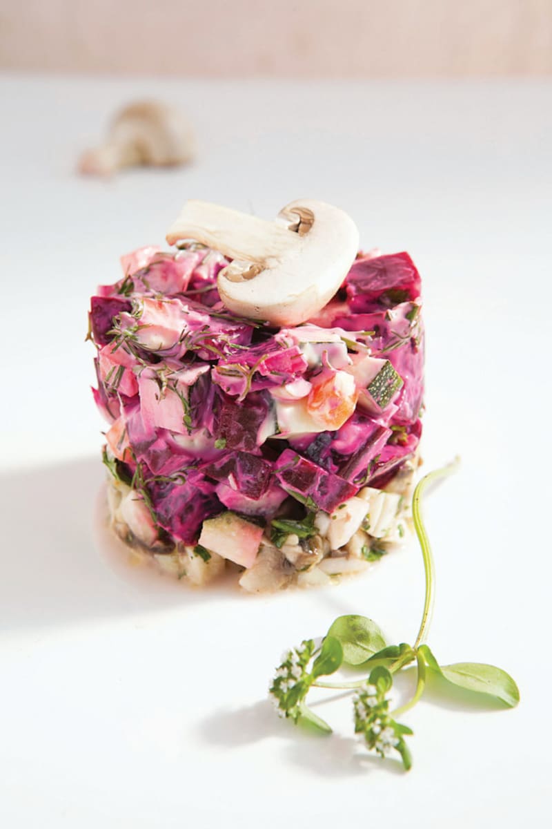 Tártaro de verduras bicolor de champiñones y betarragas (Para 4 personas)