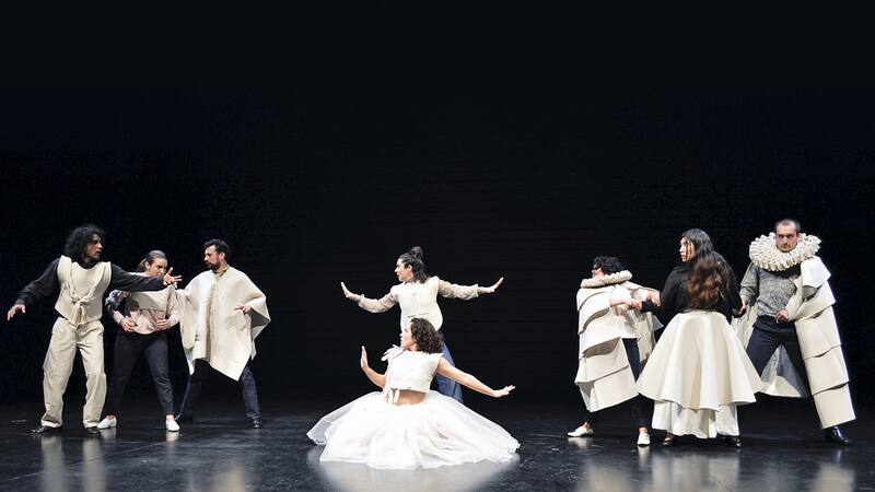 La obra Ópera es una transgresión desde el inicio. No hay escenario, no hay sillas. Solo una enorme sala donde los espectadores circulan con los actores. Son, en el fondo, parte activa del montaje. El argumento se resume así: una compañía italiana interpreta la ópera Lautaro, estrenada en Chile en 1902, que refleja el prejuicio respecto al pueblo mapuche. Y lo hará trasladándose por toda el espacio, con el público siguiéndolos. Una corporalidad dinámica.
