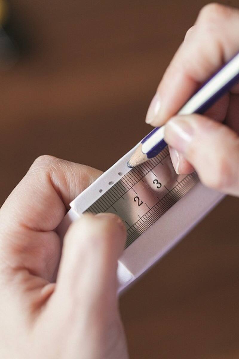 1. Vaciar la caja de fósforos. Por el lado angosto marcar con una línea cada 5 milímetros por ambos lados.