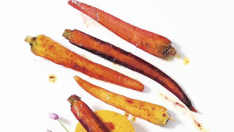 Timbales de zanahorias acompañados de zanahorias glaseadas con romero y naranja