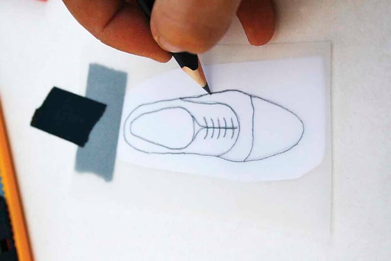 Calcar el dibujo con lápiz mina sobre un trozo de papel diamante.