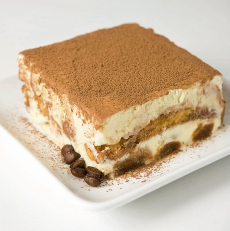 8. Al momento de servir, espolvorear la superficie del tiramisú con el cacao en polvo y servir de inmediato.