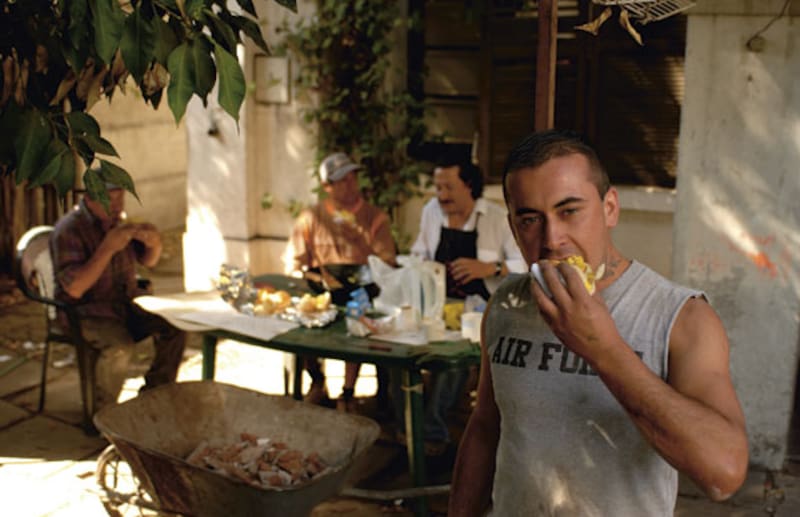 Me dio mucha pena. Cuando llegaron los camiones de mudanza se puso a llover. Parecía película. Mis hijos venían llegando de un cumpleaños y el menor, Martín, tuvo que irse porque no lo soportó. Le dolió mucho. Había vivido toda su vida ahí. ¡Dieciséis años! Era algo que terminaba, un símbolo… Pero ahora estoy muy entusiasmado, lleno de vida. Paso todo el día con los maestros, que están como locos botando los muros a punta de cincel. "Bonna la pasta, minina, ¿te piace?", le ofrece pasta a Josefa, que aún no cumple un año y no entiende ni jota de italiano. Ella lo mira con cara de que los tallarines están ricos.