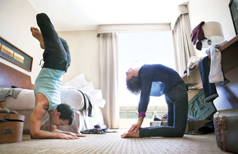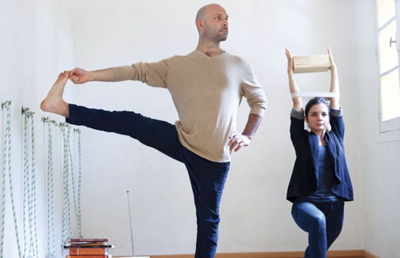 Simón Cosmelli (32) y Rosangela Castellari (33) son una pareja que viaja por el mundo dictando clases de yoga ashtanga. Han estado en Japón, Suecia, Holanda y vienen llegando de Polonia. "Vamos de país en país con una maleta y mochila cada uno. No nos gusta la estabilidad", dicen. Pero su vida no fue siempre así. Simón es chileno y arquitecto de la Universidad Católica de Valparaíso y comenzó a practicar yoga cuando aún estaba en la universidad. Rosangela es brasileña, abogada y en São Paulo tuvo un estudio jurídico, actividad que combinaba con las clases de ashtanga que desde 2006 imparte. Ambos dejaron sus antiguas profesiones cuando decidieron viajar a la India a profundizar en sus conocimientos de ashtanga: Simón viajó en 2007 y Rosangela en 2008. "Ese viaje a la India significó mi propia muerte, todo el mundo que me rodeaba ya no existió nunca más", reconoce Simón. Para Rosangela también fue especial: "a partir de ese viaje supe que mi vida iba a ser distinta", asegura. Simón y Rosangela se conocieron, curiosamente, recién en 2010 cuando ella vino a Santiago a dar clases de yoga. Desde entonces se hicieron inseparables y en 2011 se casaron y comenzaron a recorrer el mundo dictando workshops de ashtanga. "Nos gusta ir de un lado a otro conociendo distintas culturas y enseñando lo que amamos: el yoga. Es perfecto", aseguran.