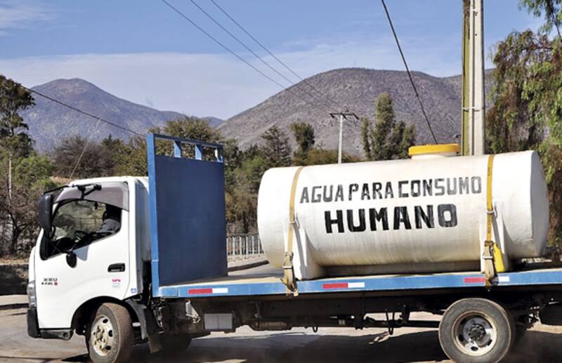 Las tres comunas que comparten el Río La Ligua y forman una barrera de cordillera a mar –Petorca, Cabildo y La Ligua– ya no tienen de dónde sacar agua para sus habitantes rurales y de la periferia de la ciudad. Tienen que comprarla a la sanitaria Esval, y repartirla en camiones aljibes. Un tercio del presupuesto municipal se gasta hoy en repartir agua: más de 1.200 millones de pesos anuales. El alcalde de La Ligua, el comunista Ricardo Sánchez, se enfunda su boina y agarra su sempiterno mate en la mano derecha y, mirando hacia el norte (por donde asoma el mal tiempo) por el amplio ventanal municipal dice con la misma convicción que un favorable vaticinio electoral: