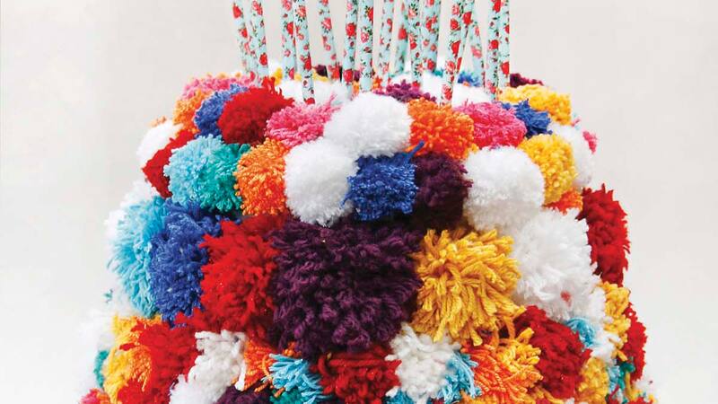 Una caja forrada con pompones para celebrar y guardar.