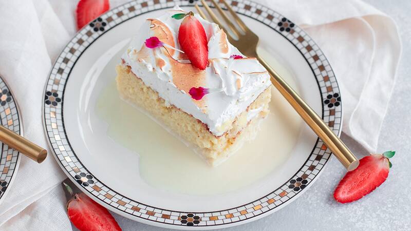 Para la torta tres leches es muy importante que todos los utensilios que se utilicen para hacer el merengue estén bien secos y limpios, sin rastros de grasa, ya que si no el merengue no aumentará de volumen a su máximo.