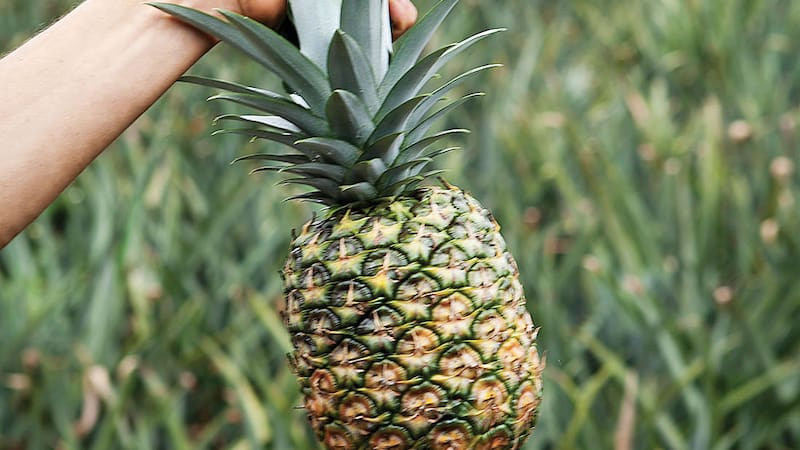 Junto a un bosque donde se observan monos de cara blanca en los árboles, está el campo de piñas. Son casi 100 hectáreas plantadas de manera muy ordenada con esta bromelia –una planta de hojas alargadas de un verde grisáceo– que produce 20 mil frutas a la semana en época de cosecha. "Orgánicamente se demora 15 meses en crecer una piña", acota Michael.