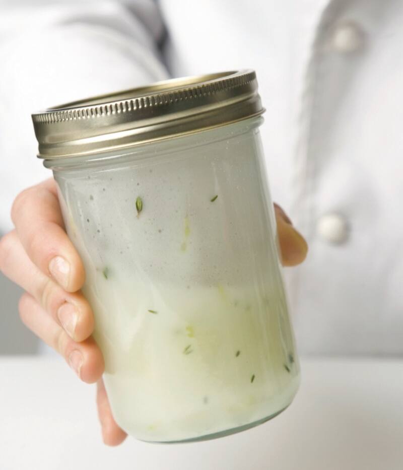 2. Cerrar el frasco y agitar hasta integrar bien todos los ingredientes. Verter a una salsera, rociar sobre la ensalada o guardar en el mismo frasco en el refrigerador hasta el momento de utilizar.