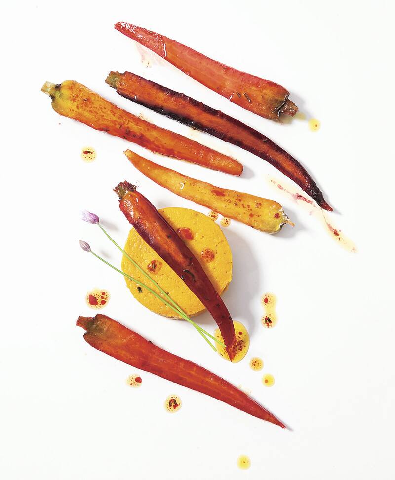 Timbales de zanahorias acompañados de zanahorias glaseadas con romero y naranja (para 3 personas)