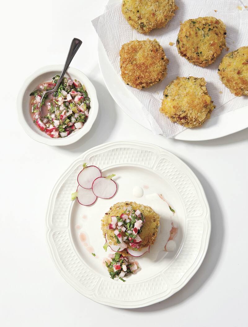 Croquetas de trucha ahumada, salsa criolla de rabanitos y crema ácida con rábano picante (para 4 personas)
