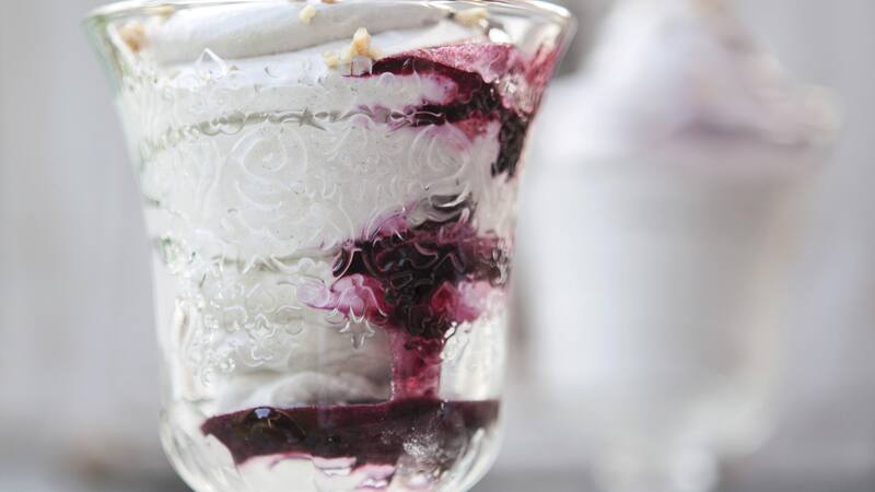 3. En copas individuales distribuir el turrón y servir decorado con las nueces y salsa de calafate.