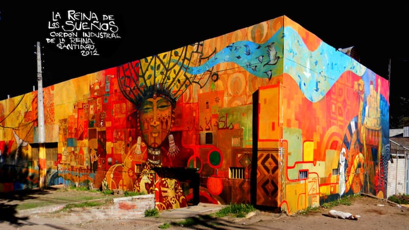 Yo me siento muchas veces como un autodidacta que fue a la universidad. Nunca tuve una formación formal como muralista; en Chile eso no existe. No tuve maestros. Sí, muchísimos referentes importantes. Un verdadero espectro variopinto de artistas me han inspirado y movido hacia adelante: desde los viejos estandartes del muralismo latinoamericano hasta el arte psicodélico y los comics, osea desde Rivera y Orozco hasta Moebius. He transitado por hartos caminos, recogiendo algo aquí y algo allá. Eso es algo bueno de nuestra época, no hay que quedarse con una sola línea. Yo prefiero fluctuar y permear distintas perspectivas.