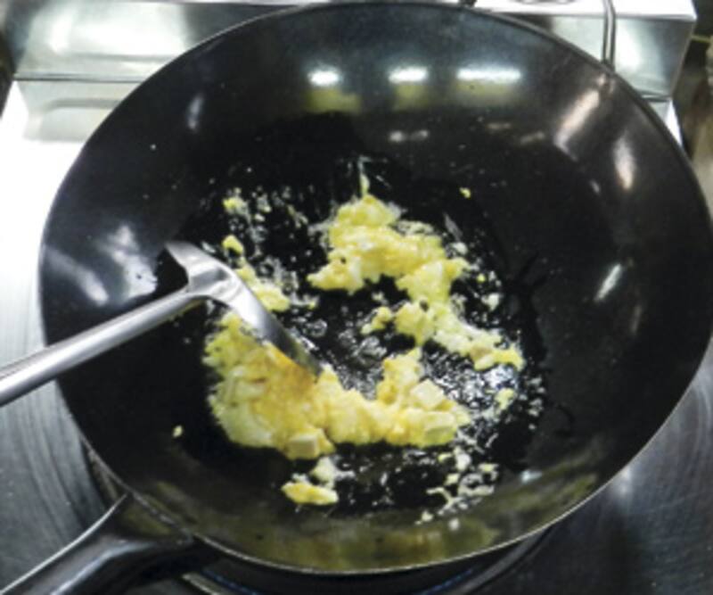 Lo primero es pelar dos diminutos dientes de ajo y aplastarlos con un cuchillo, luego freírlos en aceite de soya, en el wok que está sobre una llama de fuego media. Una vez que está dorado, se pone el huevo y el tofu –que es el ingrediente que más demora en freír– cortado en cuadrados de 1 cm. De ahí el pollo, trozado en tiritas, la salsa de pescado, una cucharada de azúcar de palma. Se saltea todo hasta que el pollo esté cocinado. Luego, se inclina el wok y con una espátula se aparta el salteado a uno de los costados. En la parte del wok que quedó despejada, sobre el fuego, se echa una taza de agua tibia y, sobre ella, una porción de fideos de arroz. Una vez que se evapora el agua, se junta todo y se agrega maní molido, dientes de dragón y cebollín picado. Se revuelve todo menos de un minuto y se monta en un plato. Agregar unas gotas de limón y servir.