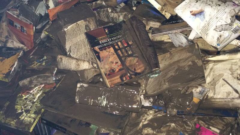 Algunas semanas después de regresar de Chiloé, ya de vuelta en Santiago, me desperté con la noticia del desborde del Mapocho, producto de una negligencia de la concesionaria Costanera Norte. Tenía mensajes de todos mis amigos preguntando si la librería que tenemos con mi hermana en Providencia se había inundado. Corrimos a ver los daños y nos encontramos con lo peor: el 50% de la librería hundida en el barro, y más de 6 mil libros perdidos. Esa librería la fundó precisamente mi madre el año 96. Con mi hermana pasamos nuestra infancia allí, ayudándola en las navidades a envolver los libros para regalo, y observándola en ese oficio que tanto le gustaba. Años después de su muerte, como una forma de darle homenaje y seguir su legado, decidimos con mi hermana hacernos cargo de la librería y volver a darle un espacio en el circuito. En eso estábamos cuando entró el barro y arrasó con todo.