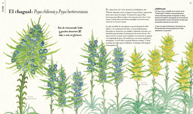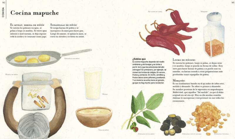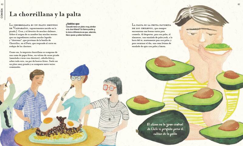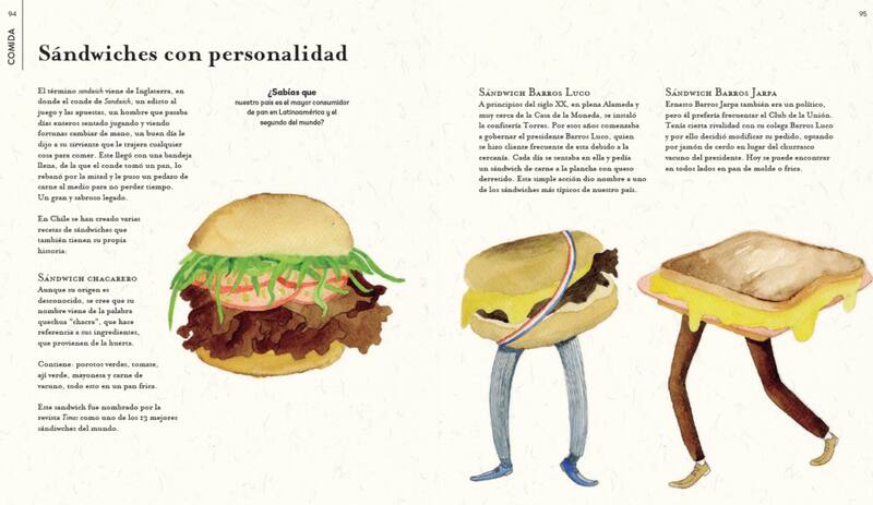 El libro parte mostrando la flora del altiplano, donde destacan el cactus candelabro y la llareta; al seguir leyendo van apareciendo el picaflor de Arica hasta llegar incluso a la preparación de la paila marina. En Santiago destacan el Parque Metropolitano de Santiago y sus teleféricos; los sándwiches como el chacarero, el barros luco o barros jarpa que se pueden comer en la Confitería Torres, entre varios otros lugares. Ya en el sur se encuentran recetas de comida mapuche, como las sopaipillas de piñón, el uso del merquén y la importancia de comer los alimentos según la estación. En Aysén aparecen los bosques de Nothofagus, el huemul, pudú y guanaco. Avanzando los pingüinos, las Torres del Paine y la ensalada de centolla. En resumen, una guía que homenajea a los paisajes y a las personas de Chile.