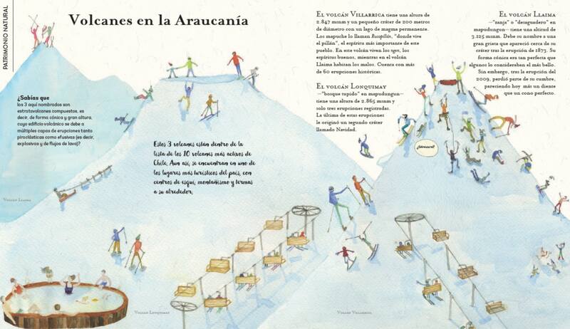 A través de ilustraciones y de las ganas de mostrar Chile, es que Francisca Villalón crea Chile en dibujos, un libro que muestra las particularidades de cada región. Aquí, una aproximación a sus páginas.