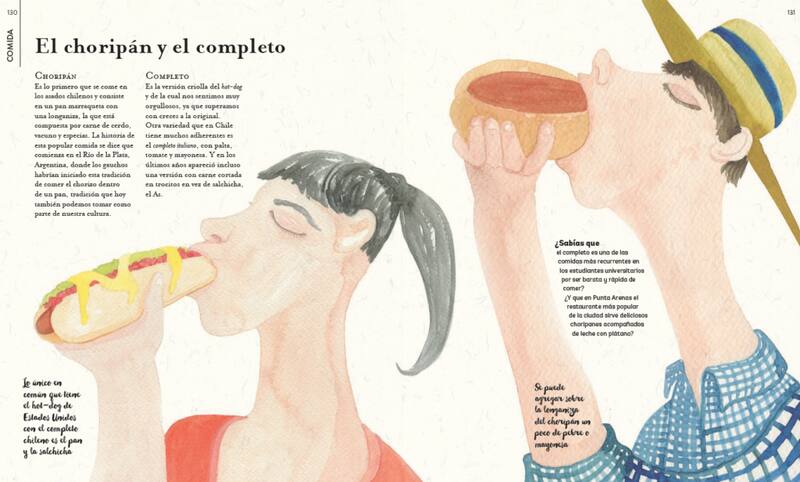 Avistar una pareja de huemules o caminar de noche en un bosque tras la ranita de Darwin, han sido momentos inolvidables que marcaron a la diseñadora Francisca Villalón y que la motivaron a crear Chile en dibujos, un libro ilustrado donde en 15 capítulos -uno por cada región- relata a través de los personajes de Juancho y su perrita Pelusa un recorrido por la flora, fauna, pueblos originarios y gastronomía de Chile. "No es una guía exhaustiva ni un barrido profundo. Es, más bien, un homenaje a todo aquello que ha llamado mi atención al recorrer Chile", dice.