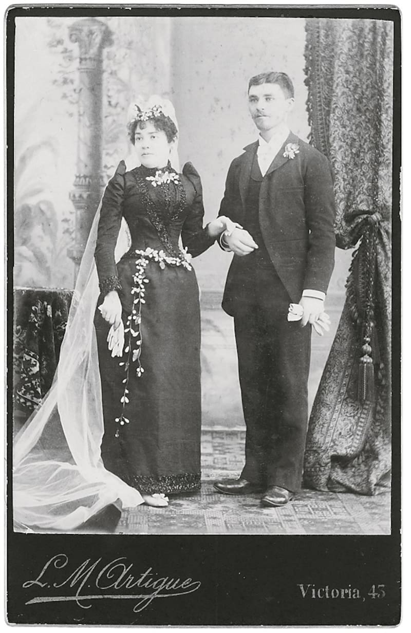 Pero lo que hoy puede leerse como la genialidad o provocación de un diseñador, en el pasado fue parte de un protocolo social aceptado. A fines del siglo XIX y principios del XX, muchas mujeres se casaron de negro, en tiempos en que el blanco ya era el color oficial para las nupcias. Así se constata en las fotografías históricas que se guardan en los archivos del Victoria and Albert Museum de Londres, del Museo del Traje de Madrid y del National Museum of Scotland en Escocia. En tanto, en Chile también hay registros documentales: una decena de fotos de novias con vestidos negros en el archivo del Museo Histórico Nacional; tres fotos y un vestido de matrimonio oscuro en el Museo de la Moda; y un vestido y algunas fotos más en el Museo Antonio Felmer de Puerto Varas. Son imágenes en blanco y negro, gastadas por el paso del tiempo, pero donde aún se ve con nitidez a las mujeres, en un gesto solemne del brazo del marido, engalanadas con sus vestidos negros, sus velos, coronas y ramos de flores.