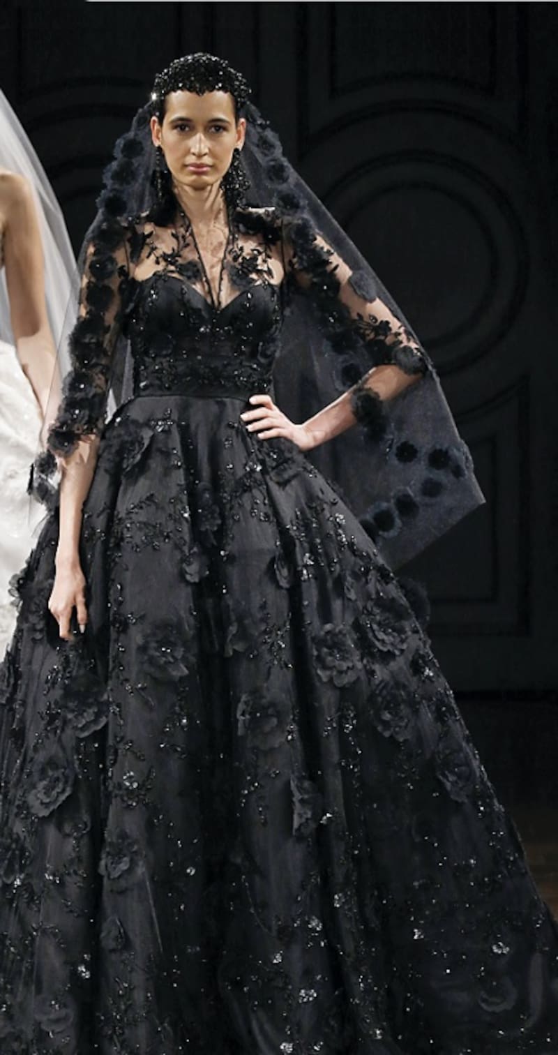 En abril pasado, en el Barcelona Bridal Fashion Week, siete de los 21 diseñadores que mostraron sus colecciones para el 2017 contaban con, al menos, un vestido de novia completamente negro. Uno de ellos, el diseñador indio Naeem Khan (58), que ha vestido a mujeres emblemáticas del mundo de la moda como Michelle Obama y Kate Middleton, mostró su vestido Havana, el mismo con el que cerró su presentación en el Bridal Fashion Week: un espectacular traje de novia con cintura ajustada, faldón largo y velo de encajes; todo completamente negro.