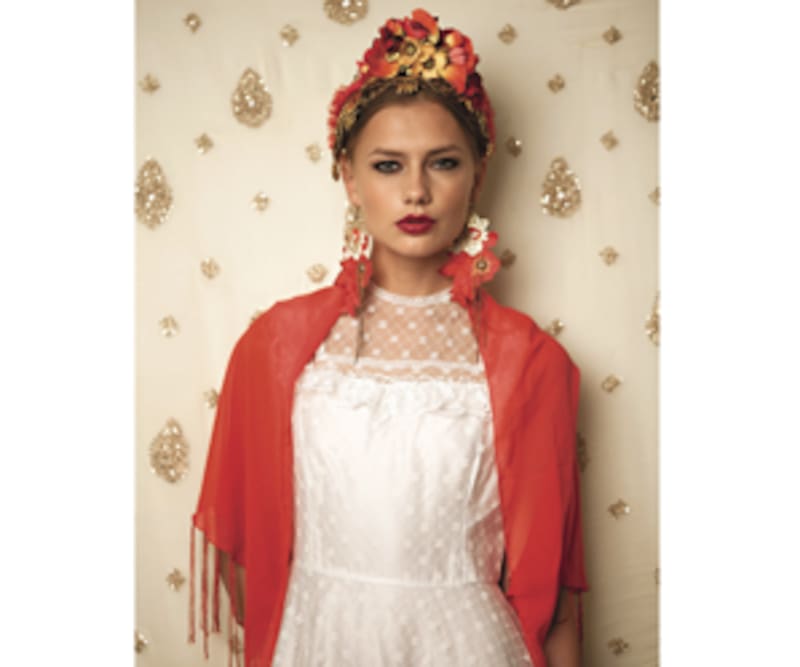 Como accesorios de sus vestidos, Florencia Racz confecciona tiaras como las que usaban las cantantes de coro de la Hungría de los años 50 y 60; collares de estilo afgano hechos con lanas teñidas y metales; y aros de madera lacada, y de cristales checos y mostacilla.