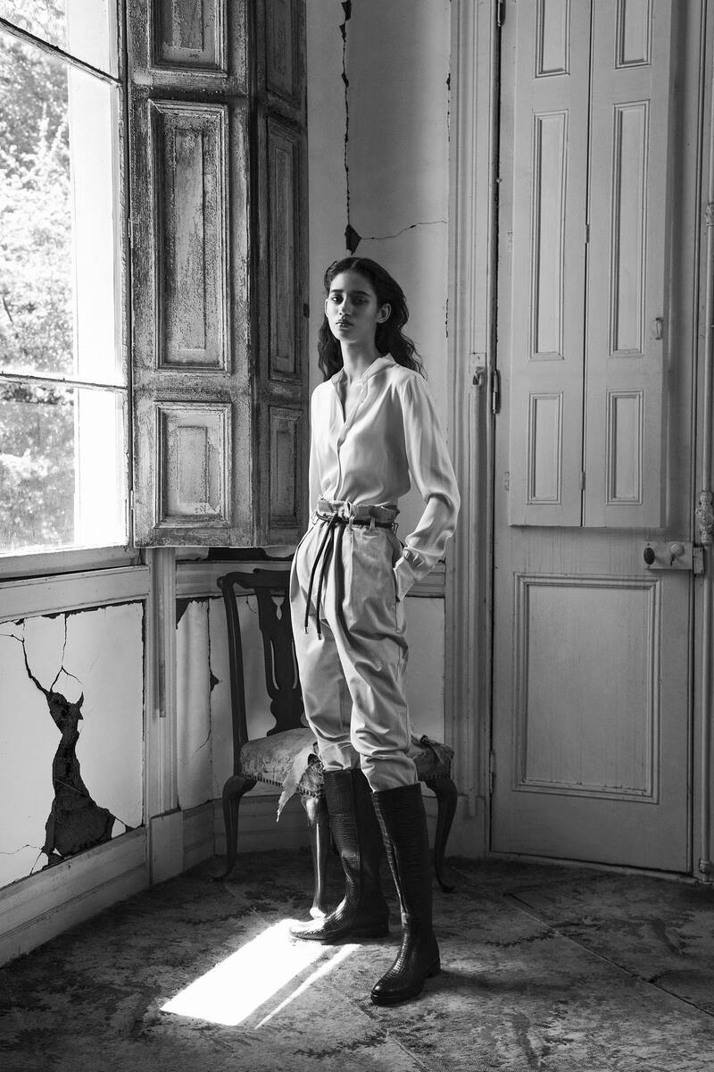 Blusa, $ 185.000, Brooks Brothers. Pantalón River Island, $ 46.990, Ripley. Botas, $ 129.990, Hush Puppies.[/caption]