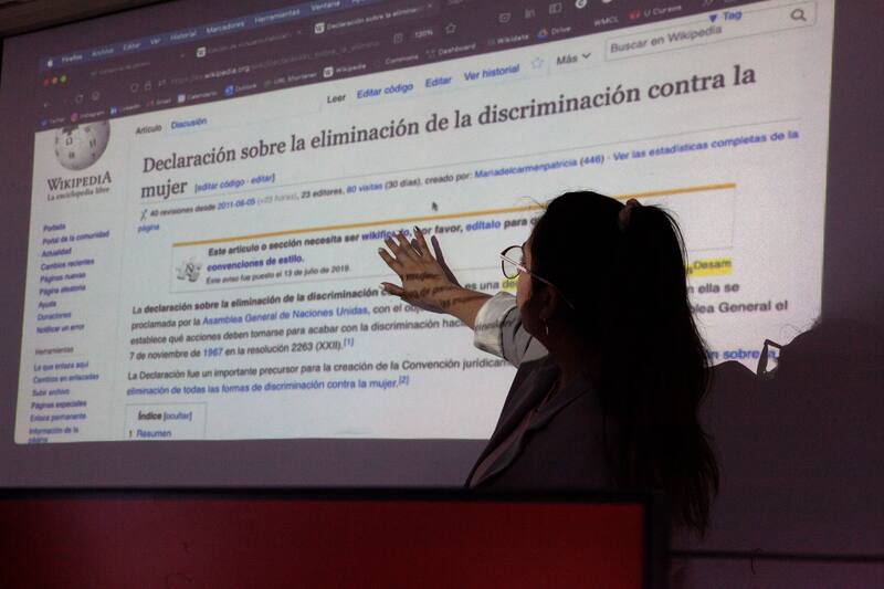 Fabiola Fariña es una periodista chilena que ha trabajado durante muchos años como comunicadora en temas ambientales. Hace un tiempo participó de un encuentro de mujeres latinoamericanas usuarias de Wikipedia. Cada una tenía que buscar en la plataforma a mujeres de su país, líderes o dirigentas ambientales. “Empecé a mapear, pero me costó mucho encontrar. Creo que había solo tres y el resto no existen. Y en Centroamérica es dramático porque tienen menos acceso a la tecnología. La invisibilización es brutal”. Por eso decidió sumarse a las “Editatonas”, una iniciativa organizada por la académica del departamento de periodismo de la Universidad Alberto Hurtado, Amaranta Alfaro, en alianza con Wikimedia, la organización matriz de Wikipedia. “Lamentablemente, los mismos sesgos de género que existen en la sociedad se pueden encontrar en la enciclopedia virtual”, dice al comenzar una de estas jornadas, Carla Toro Fernández, encargada de Comunidad y Nuevos Usuarios en Wikimedia Chile. La editatona es un encuentro en el que un grupo de mujeres se reúnen, cada una frente a su computador, a editar entradas de Wikipedia. Carla prepara una lista de artículos sugeridos que tienen sesgo de género, pero también deja que cada una suba o edite alguno de su interés. Y contesta sus dudas. “Las biografías de las mujeres están más propensas a objeción; suele haber alguien que dice ‘no es tan reconocida, necesita más referencias’”, les explica. Por eso también les sugiere poner mínimo cinco referencias cada vez que suban una biografía de una mujer. “Es triste porque se pueden encontrar biografías de hombres futbolistas que no tienen ninguna referencia y nadie les dice nada”, agrega. Y pone el ejemplo de Valentina Muñoz, la joven chilena que en septiembre del 2021, fue nombrada como una de las y los Defensores de los Objetivos de Desarrollo Sostenible (SDG Advocate) para los 193 países que componen las Naciones Unidas. “En esa fecha intenté crear su entrada en Wikipedia pero los usuarios no me dejaron porque me decían que las referencias no eran suficientes. Busqué más, pero en ningún medio la habían entrevistado. Recién ahora lo pude hacer porque en septiembre pasado fue noticia porque la invitaron a exponer a la 77° Asamblea General de las Naciones Unidas. Pero no fue noticia por esto, sino que por la polémica por representar a Chile teniendo su pelo teñido de color rosado”, cuenta Carla.