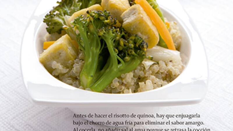 5. En platos individuales distribuir el risotto de quínoa reservado, agregar encima el wok con verduras y tofu y servir de inmediato.