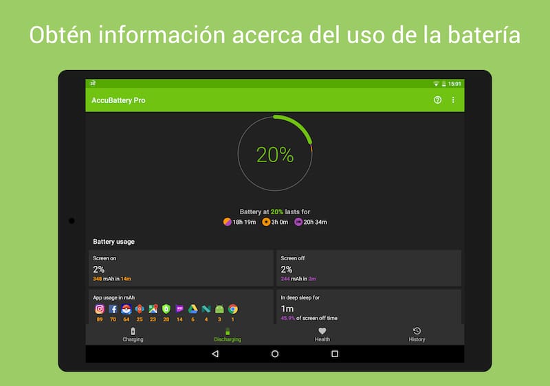Los nombres son similares, pero no hay que confundirse. AccuWeather es una plataforma muy popular en la que los usuarios pueden ver el pronóstico del tiempo y, con eso, prepararse para cualquier eventualidad. Y es que AccuBattery no es lo mismo, pero sí tanto o más útil. La aplicación creada por Digibites promete a los usuarios llevar un completo registro sobre el uso de la batería. De hecho, proponen extender la vida útil de la batería hasta en un 200% cargando apenas hasta el 80%, mientras al mismo tiempo muestran cómo realizan su medición y quiénes avalan su trabajo. Eso sí, como detrás de todo proceso actual, existe una inteligente artificial detrás de la app, y que va nutriéndose día a día, haciéndose más inteligente.