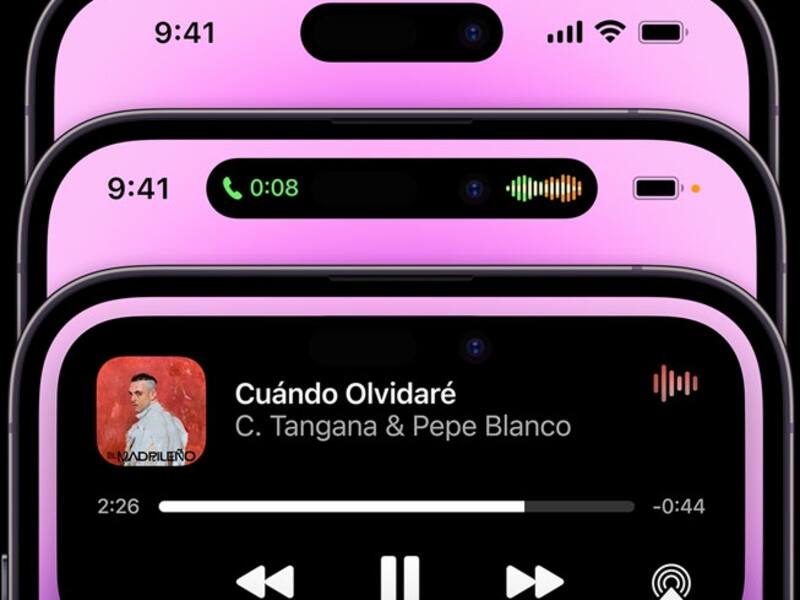 Por su parte, los modelos de iPhone 14 Pro y Pro Max se distancian de sus hermanos generacionales y pasan del chip A15 al A16. Además, representan el primer gran cambio en la pantalla que se ha realizado en un iPhone. Al menos desde hace dos años se comentaba la posibilidad del rediseño de la muesca en pantalla (donde está la cámara frontal), pero hoy se confirmó la decisión. Para la familia Pro la nueva muesca es animada, en algo que los ejecutivos de la compañía nombraron como Dynamic Island.