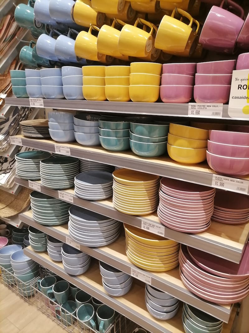 Además de que Casaideas es un espacio visiblemente a escala más humana que IKEA, su concepto apunta a querer satisfacer todos los gustos decorativos, y eso se nota en los productos que dan la bienvenida al recorrido tanto en esta como en todas las tiendas a lo largo del país: los artículos de mesa. ¿Te gusta ese tipo de loza con mucho color y motivos primaverales? Acá la encuentras. ¿Te gustaría tener un juego de tazas monocromático en rojo sangre o verde aceituna? Acá está.