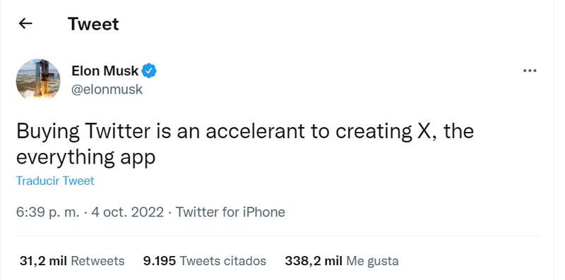 Lo de Elon Musk es casi una obsesión. Tras conocerse nuevamente sus intenciones de la compra de Twitter, el empresario estadounidense publicó en su propia cuenta de la red social un mensaje. “Comprar Twitter es un acelerador para crear X, la aplicación de todo”, comunicó.