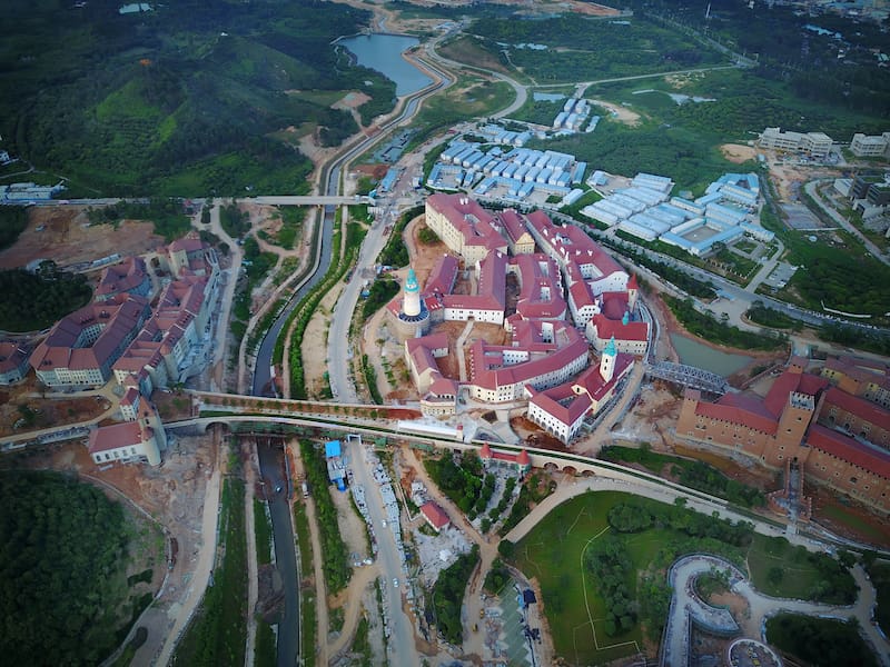 La construcción del campus representó una inversión de US$1.5 billones y cuenta con certificación LEED, lo que garantiza que sus instalaciones son sostenibles y respetuosas con el medio ambiente. El levantamiento del espacio tardó tres años y está dividido en doce zonas, cada una inspirada en una ciudad europea y recrean París, Verona, Burgundy, Luxemburgo, Oxford, Brujas, Bolonia, Granada, Windermere, Heidelberg, Friburgo y Český Krumlov. Todas ofrecen un entorno de trabajo único y estimulante para los más de 25.000 empleados que trabajan en los 108 edificios que lo conforman.