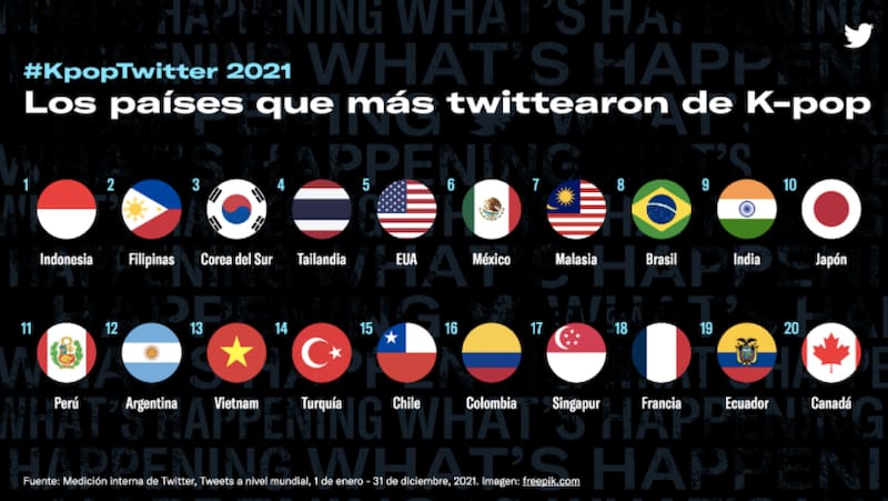 Con la ayuda de Twitter y otras plataformas, los fanáticos del pop coreano se han transformado en una de las comunidades más grandes en Chile quedándose en el puesto 15, a nivel global, con la mayor cantidad de tweets en 2021 sobre el tema, movilizando acciones sociales, voluntariados e incluso campañas políticas. Un poder que crece y representa la acción colectiva de las nuevas generaciones unidas gracias a internet.