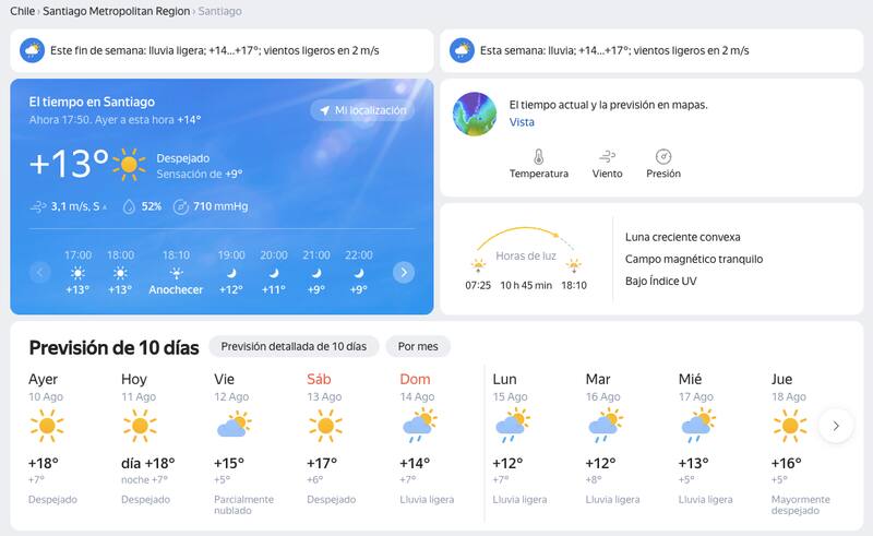 Tanto la app como la versión web de la plataforma ofrecen un detallado informe meteorológico, según la ubicación del usuario, que incluye una previsión del tiempo en los próximos 30 días, que va siendo actualizada cada tres minutos.