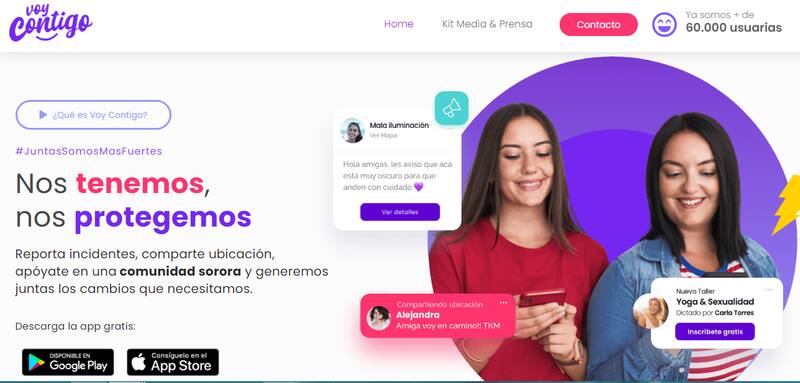 La gran diferencia en el caso de Voy Contigo, en comparación a otros aplicativos, es que conectan a las usuarias con otras mujeres y ya no son solo contactos de confianza que pueden seguir tu trayecto o recibir señales SOS, sino que pueden conectarse con otras que estén físicamente cerca en un lugar. “Si viajo a otra región, por ejemplo, la idea es que gente que esté ahí mismo me pueda ayudar también, y no necesariamente mis contactos de confianza, que estarán en otra ciudad y a través de una pantalla”, ejemplifica.