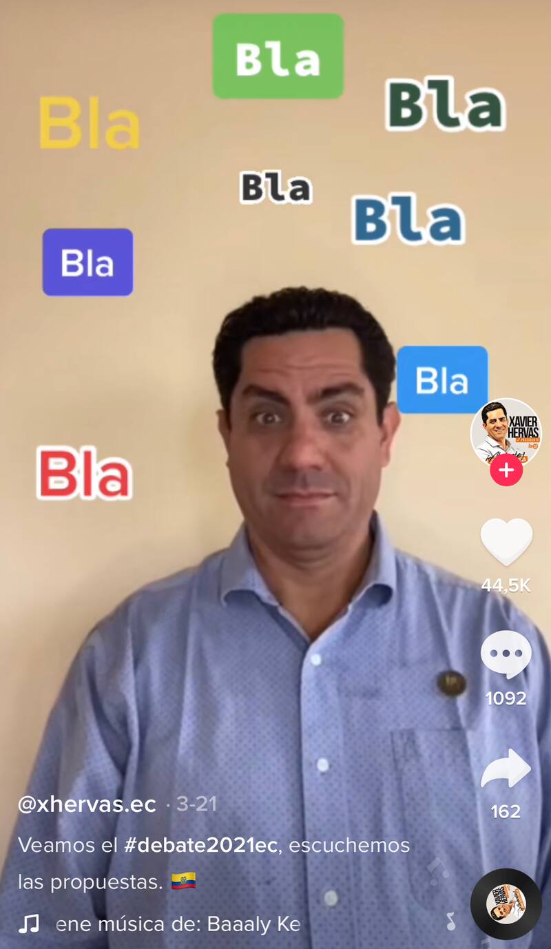 Debido al éxito del inexperto Hervas, la candidatura de Lasso los integró en segunda vuelta, labor que resultó clave para el triunfo en una ciudadanía dominada por millennials y centennials. El primer video en TikTok del actual presidente ecuatoriano se estrenó en febrero último, para inaugurar la campaña de segunda vuelta. Utilizó el hit Bad (1987), de Michael Jackson, como fondo sonoro mientras el candidato, apoyado con notoria dificultad en una muleta, intenta imitar un movimiento del fallecido “Rey del Pop”.
