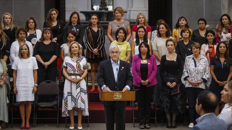 En las primeras lineas de su discurso, el mandatario recordó a recordó a mujeres pioneras en diferentes espacios y épocas de la historia de Chile, como la patriota Paula Jaraquemada, la precursora del feminismo y sufragista Elena Caffarena, la poetisa y Premio Nobel, Gabriela Mistral e incluso a la expresidenta, Michelle Bachelet.