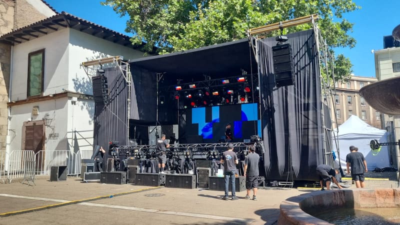 Según pudo constatar La Tercera, en la esquina de calle Londres -en el barrio París Londres que alberga las sedes de los partidos del Socialismo Democrático y recientemente el comando de la candidata- ya está instalado un escenario que mira hacia la Alameda.