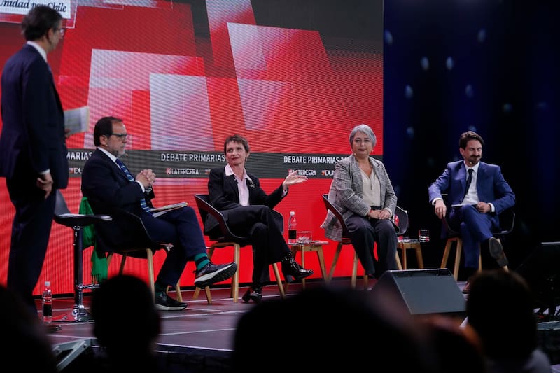 Los cuatro candidatos a La Moneda del Pacto Unidad por Chile, Carolina Tohá (PPD), Gonzalo Winter (FA), Jeannette Jara (PC) y Jaime Mulet (FRVS), protagonizan el debate primarias presidenciales 2025 organizado por La Tercera y radio Duna.