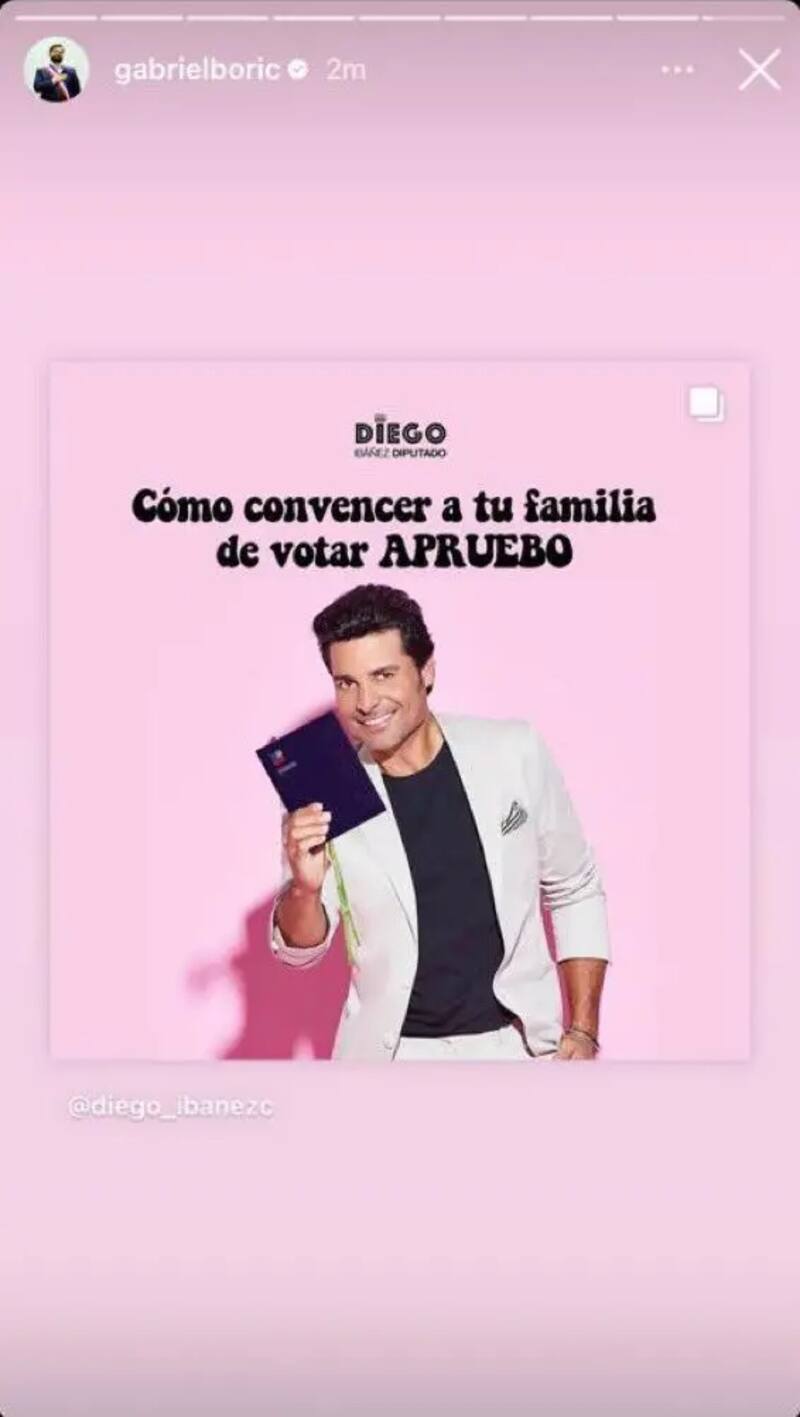 El pasado miércoles 20 de julio, a través del Instagram oficial del Presidente, éste compartió una publicación que decía “Cómo convencer a tu familia de votar Apruebo”, en una foto donde aparecía la imagen del cantante puertorriqueño Chayanne sosteniendo el texto de nueva Constitución.