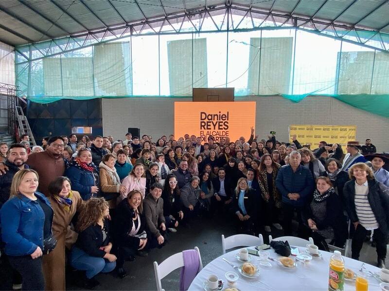 Este jueves en la mañana, Reyes tuvo un desayuno en un gimnasio con dirigentes que apoyaron su campaña. En horas de la tarde, tuvo un banderazo acompañado de cerca de 300 vecinos de la comuna.
