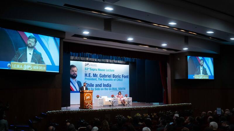 En el marco de su discurso durante el Indian Council of World Affairs (ICWA), es que el mandatario chileno se refirió respecto al Presidente de Estados Unidos señalando que “en la Asunción del nuevo Presidente de Estados Unidos veíamos a los grandes millonarios del mundo, Jeff Bezos, Elon Musk, Marck Zuckerberg, acompañando con una pleitesía de otros tiempos a quien pareciera pretender ser un nuevo emperador”.