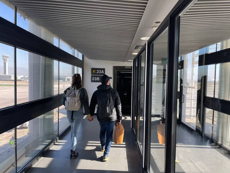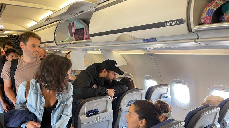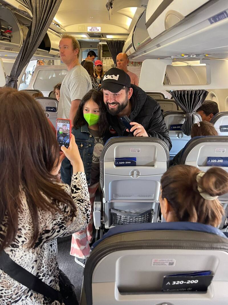 Es así como se pudo apreciar como Boric llegaba al terminal aéreo, hizo la fila correspondiente, el check-in y se subió a la nave que lo trasladaría al sur, momento en el cual pudo conversar con algunos pasajeros e incluso tomarse fotos con algunos.